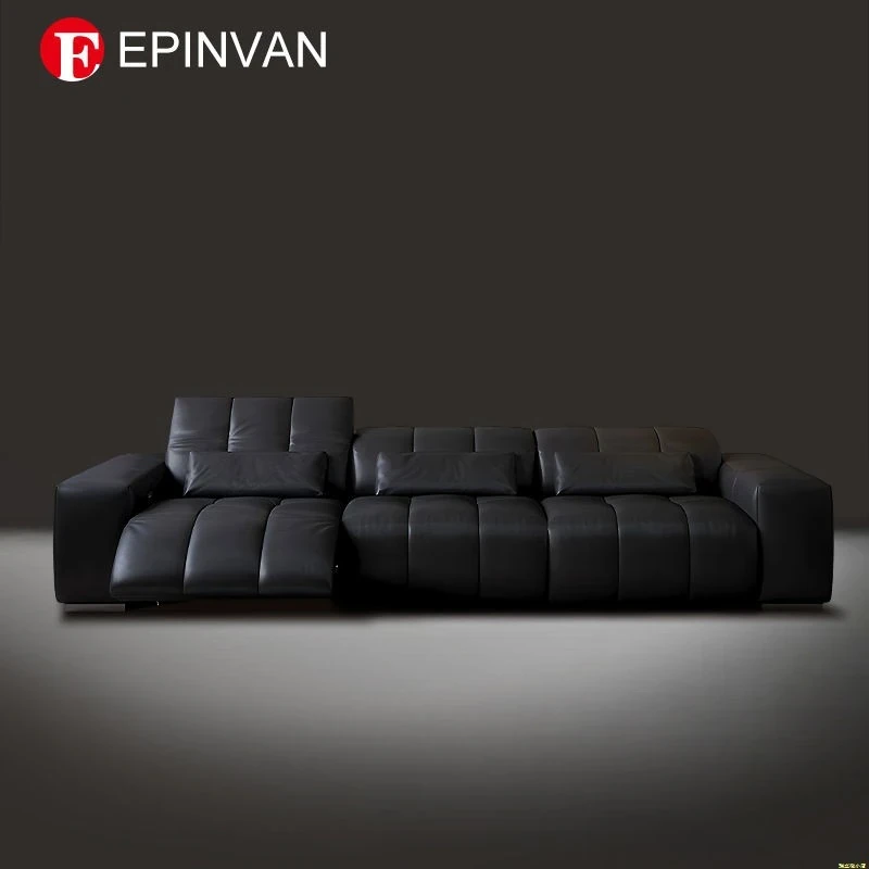 厳選されたサバのピクセル電動ソファ - ブラックレトロスタイル、本革高級牛皮製、背もたれ調整可能な快適ソファで、あなたのリビングをスタイリッシュに演出します!