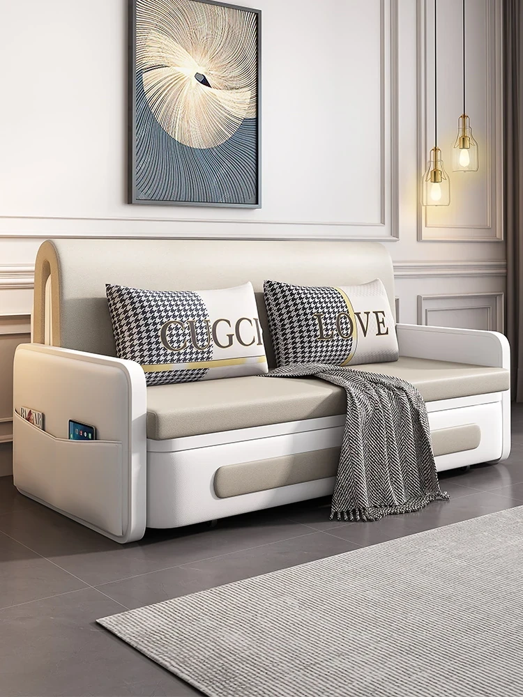 2025年版フレンチクリームソファベッド!折りたたみ式で、小さなお部屋にもぴったり。レトロなデザインで、多機能な一人用スライドベッド。快適な生活空間を実現!