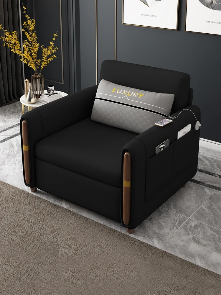 ブラック一人用ソファベッド - オフィスでの昼寝に最適!コンパクトサイズの2WAYソファベッド、引き出し式で簡単に広がる伸縮機能付き。快適な休息をあなたに!